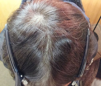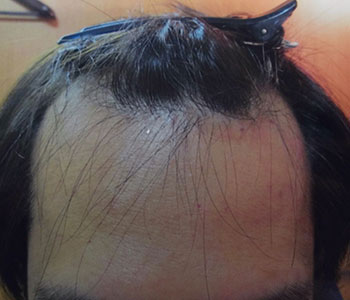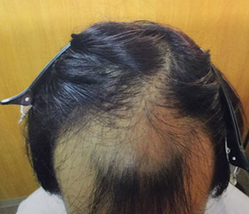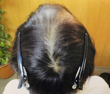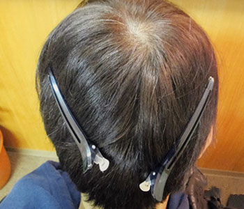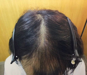 主に前頭部、頭頂部が薄くなっている状態です。6ヶ月の時点で髪のボリュームが増え、露出はほぼ見えなくなりました。当院の発毛プログラムでの発毛専門治療では、かなり進行している状態でも、このように自分の髪を取り戻す事が可能なのです。