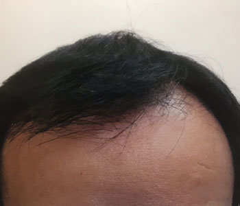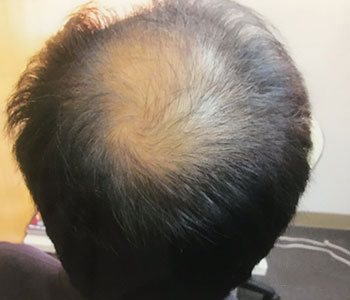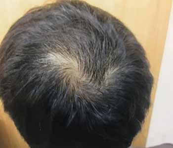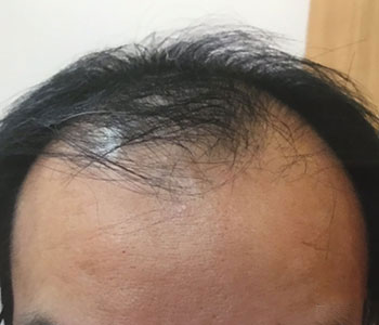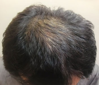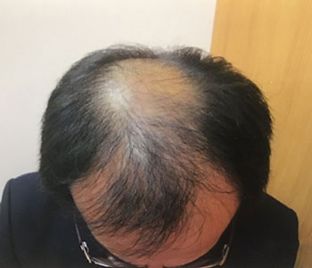 頭頂部から前頭部にかけてかなりAGAが進行した状態でした。当院の医学的治療により、12ヶ月で劇的に改善しました。真正面から見てもハッキリと毛量が増加していることがおわかりいただけます。