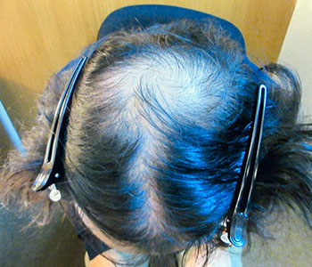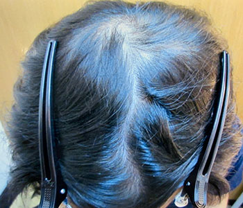 頭頂部を中心にAGAが進行した状態でした。当院の医学的治療により、6ヶ月で劇的に改善しました。