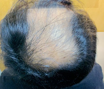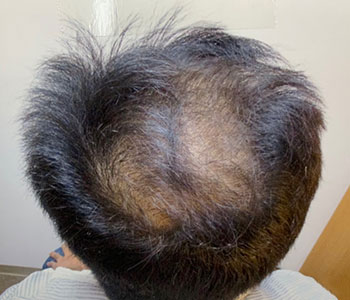 前頭部から頭頂部に薄毛が進行しておりました。AGAの症状がかなり進行していたため、12ヶ月経った時点でもまだ透け感はございます。しかし、当院の発毛プログラムでの発毛専門治療により、治療前と比べると、治療後ははっきりと薄毛が改善している事がご確認いただけます。
