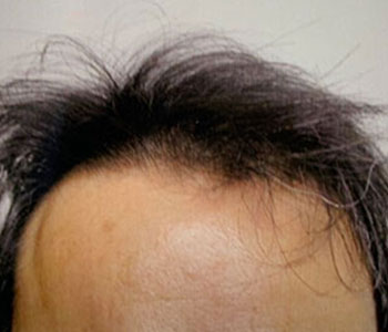 生え際、前頭部、頭頂部まで薄毛が進行し、地肌が見える状態になっております。当院の発毛治療により、髪の毛が1本1本がしっかりと成長しました。