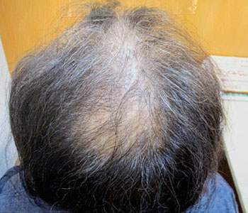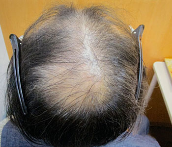 頭頂部の地肌の露出が目立っている状態です。当院の発毛プログラムでの発毛専門治療により、地肌の露出部位も改善され、髪質も太くなったためボリュームがでてきました。