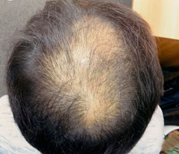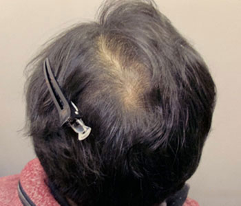 髪全体にコシがなくなり、頭頂部にかけての地肌の露出はかなり進行しております。当院の発毛治療プログラムにより、髪がボリュームもアップし、地肌の露出も見違えるほど改善しました。