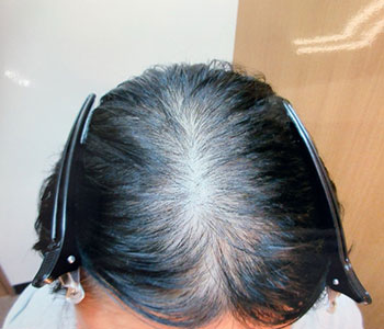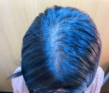 分け目の薄毛が目立ちます。治療後は、薄毛で悩んでいたとは思えないほど、とても自然で美しい髪の状態を取り戻す事が出来ました。