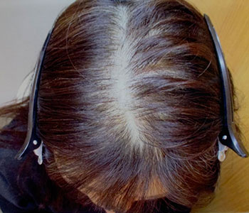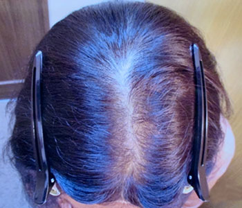 頭頂部と前頭部の髪の毛が薄くなり、地肌が露出している状態です。オーダーメイドの内服薬治療のみですが、5ヶ月でここまで回復する事が出来ました。薄くなっていた分け目は改善され、ボリュームもアップしております。