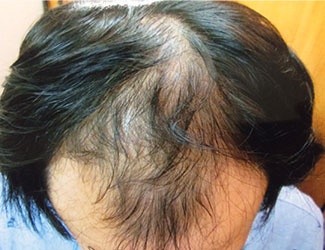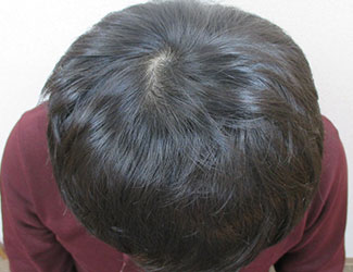 前頭部がかなり薄く地肌が露出しておりましたが、当院の発毛治療で劇的な改善を達成しました。ここまで増えますと、写真を見れば明らかですが印象が劇的に変わっております