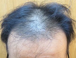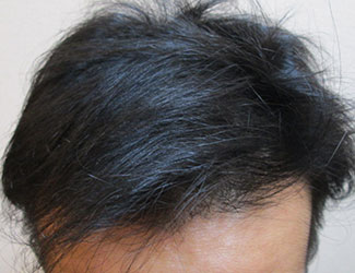 前頭部がかなり薄毛が進行していました。治療により大きく改善し、前から見るとフサフサと言っても良い状態です。