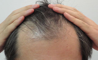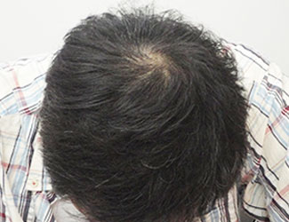 頭頂部から前頭部にかけてかなり地肌が露出してしまっている状態です。当院の専門治療により、かなり髪のボリュームが増え、露出はほぼ見えなくなりました。こういう薄毛の状態の患者さまは多いと思います。40代以上の年齢の方でもこのように自分の髪を取り戻す事が可能なのです。