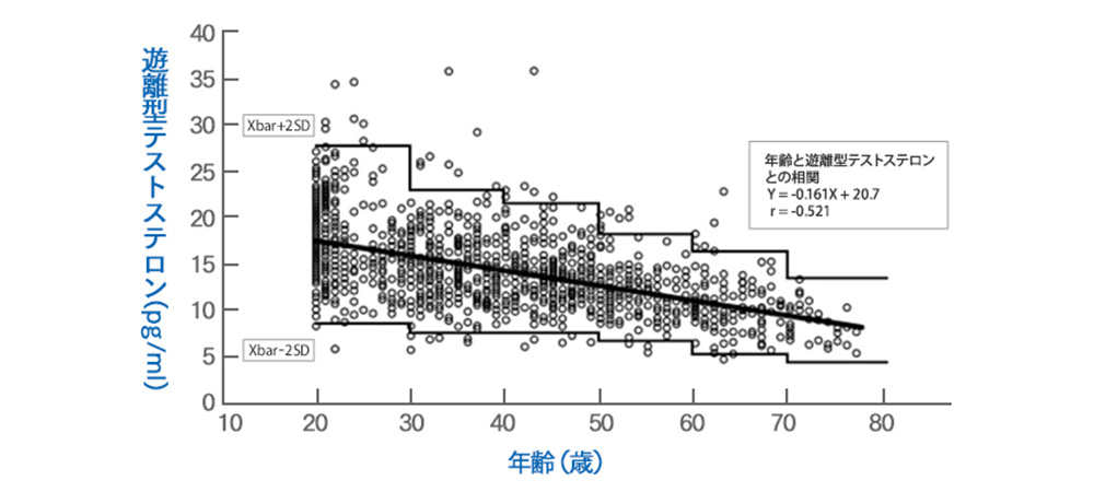 (出典:日本泌尿器科学会雑誌「日本人成人男子の総テストステロン, 遊離テストステロンの基準値の設定」より一部抜粋)