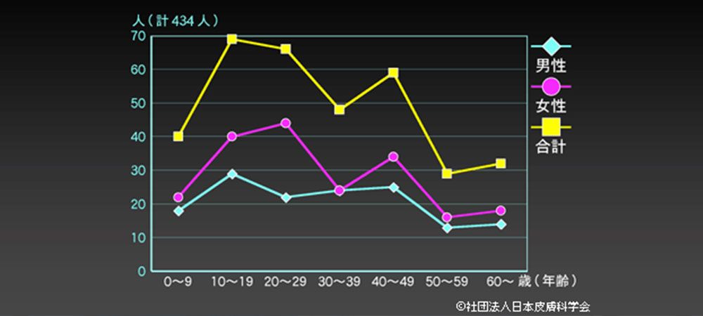 出典) 公益社団法人 日本皮膚科学会 「円形脱毛症の性・年齢分布(新潟大)」