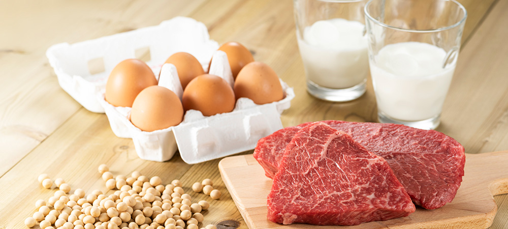 タンパク質は、肉・魚・卵・乳製品などに含まれる「動物性タンパク質」と、大豆・納豆・豆腐などに含まれる「植物性タンパク質」とに分けて考えることができます。「動物性タンパク質」は、人が体内で合成することのできない「必須アミノ酸」をバランス良く含んでいることが特徴です。